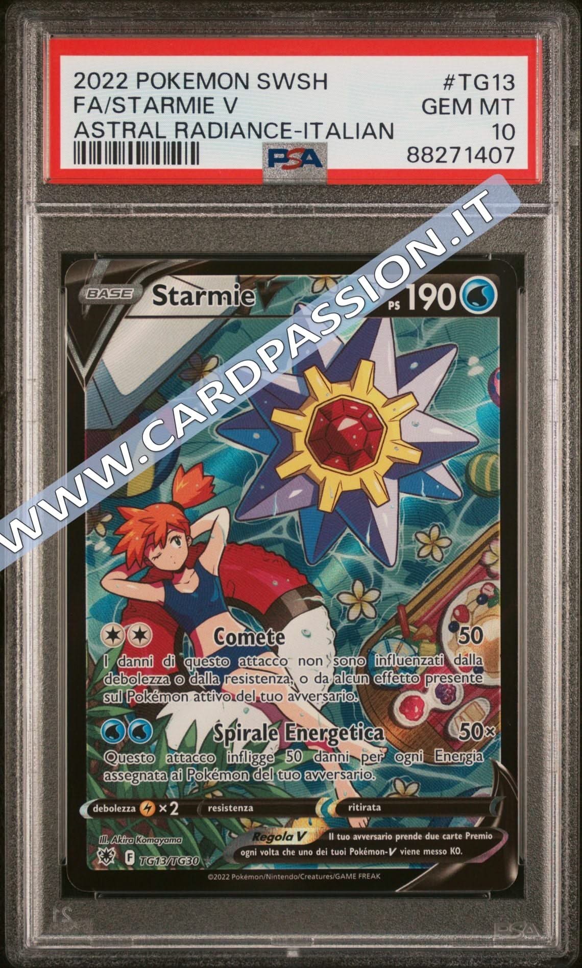 Carta Pokémon gradata, sigillata in custodia protettiva antimanomissione e certificata dall'ente di Gradazione riconosciuto a livello internazionale PSA con voto 10 (GEM MINT).